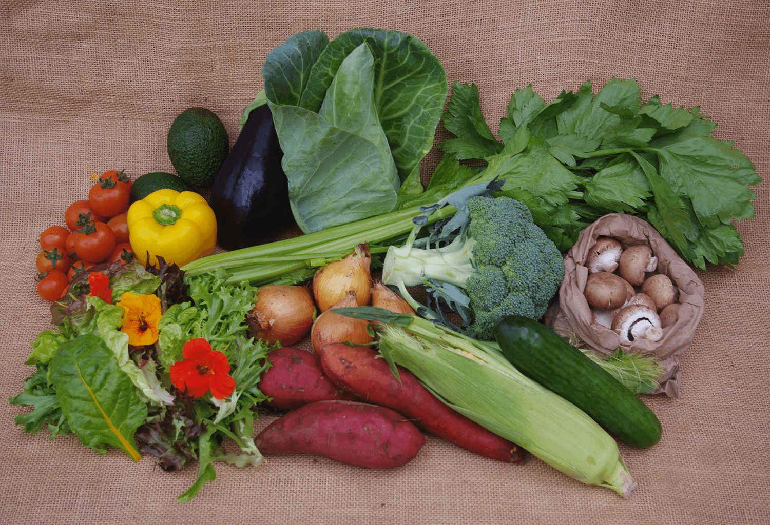 A weekly selection of seasonal organic vegetables, mainly grown on Shillingford Farm. Contents change each week depending on what is fresh and in season.
