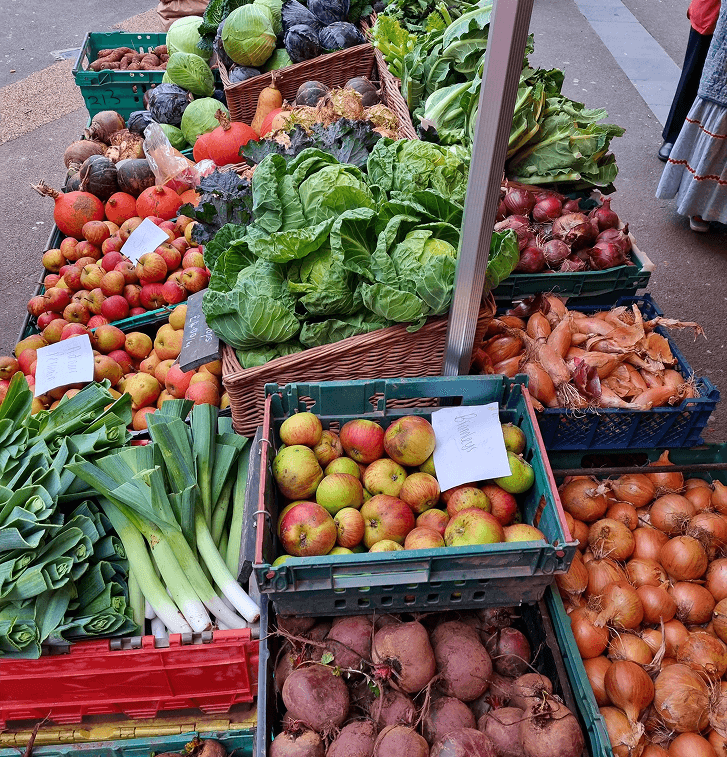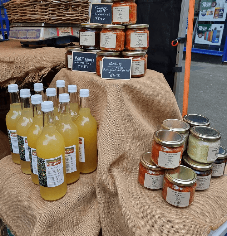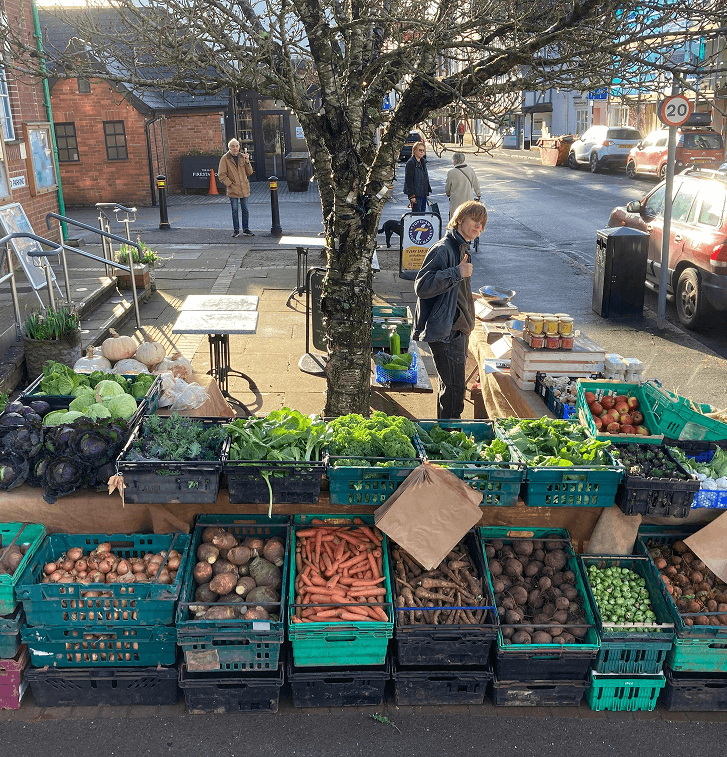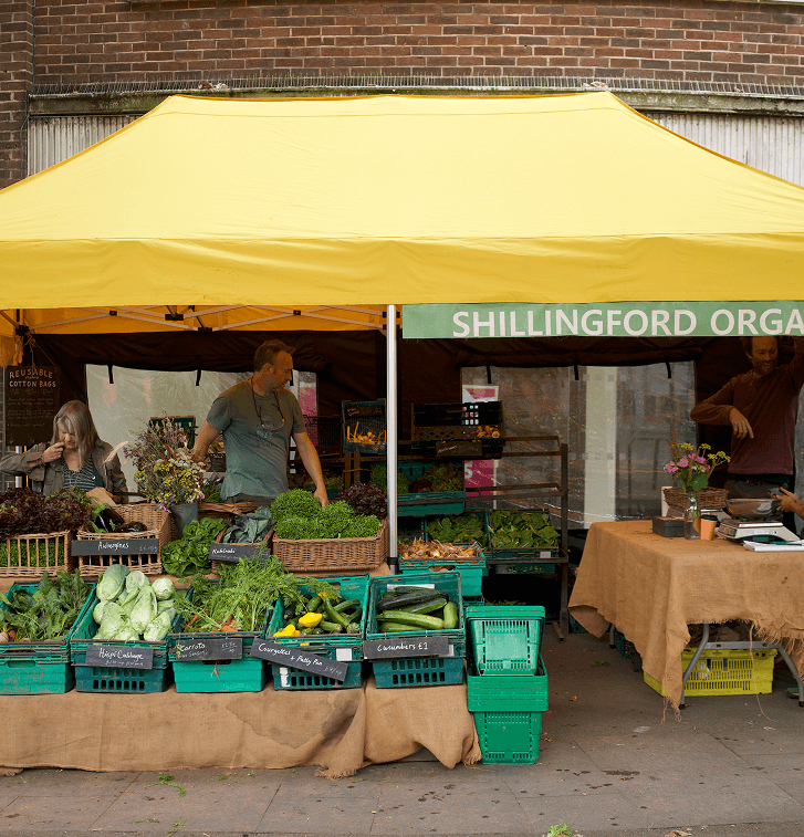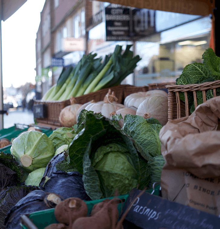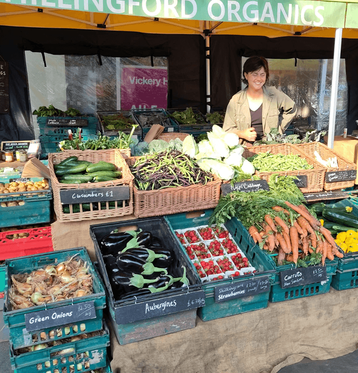 We sell our full range of home-grown produce at five local farmers' markets: